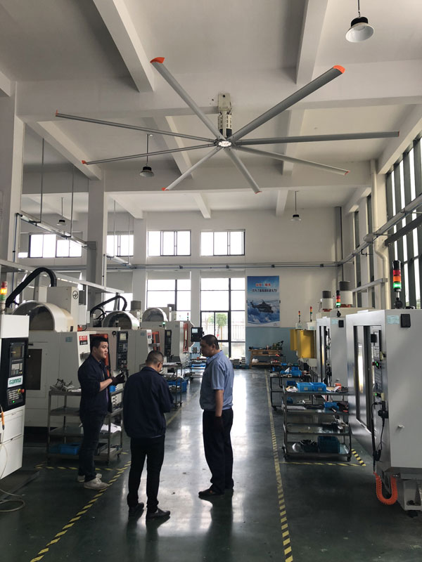 我公司生產的大型工業吊扇直接懸掛在廠房屋梁下,風力柔和,能加快車間空氣流通,有效降低車間內溫度,改善車間空氣環境質量,有利于員工的身體健康。